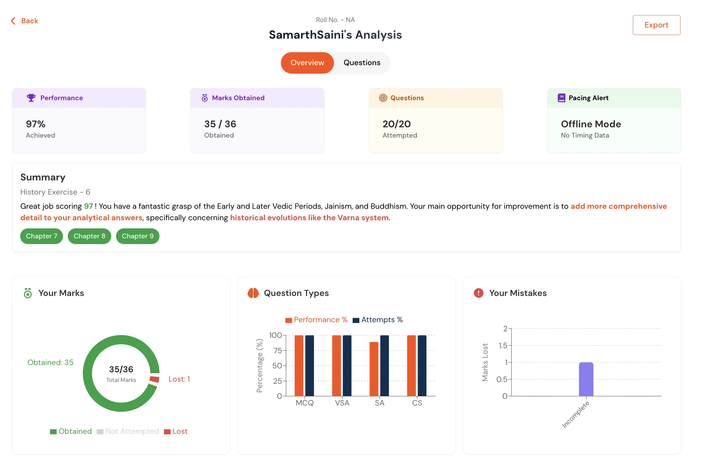 OCR + LLM, 95% accuracy, marks + mistakes + suggestions. Evaluate handwritten answers instantly.